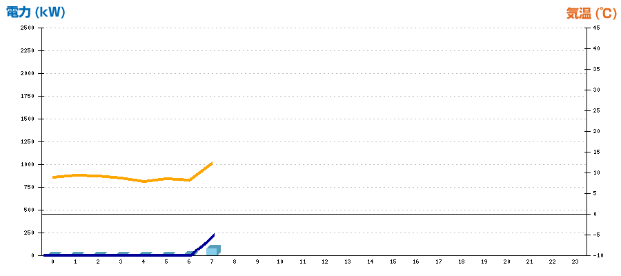 | 時刻 | 日射強度 (kW/㎡) | 気温 (℃) | 発電電力量 (kWh) | CO2削減量 (kg-CO2) | 売電金額(概算) (円) |