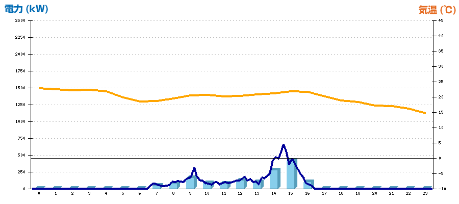 時刻 | 日射強度 (kW/㎡) | 気温 (℃) | 発電電力量 (kWh) | CO2削減量 (kg-CO2) | 売電金額(概算) (円) |