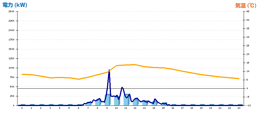 | 時刻 | 日射強度 (kW/㎡) | 気温 (℃) | 発電電力量 (kWh) | CO2削減量 (kg-CO2) | 売電金額(概算) (円) |