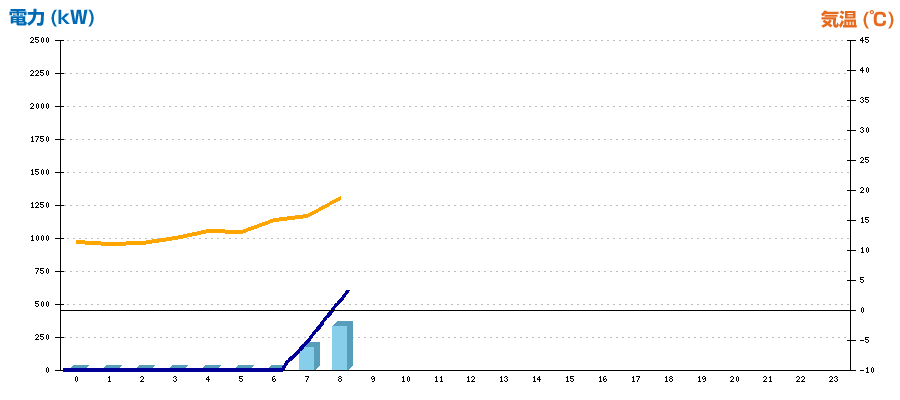 | 時刻 | 日射強度 (kW/㎡) | 気温 (℃) | 発電電力量 (kWh) | CO2削減量 (kg-CO2) | 売電金額(概算) (円) |